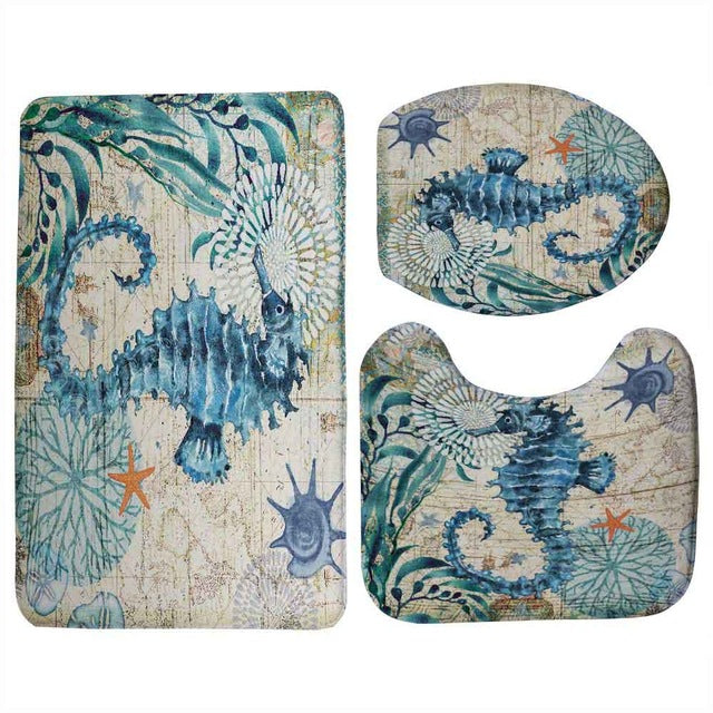 Miracille Marine Style 3 Pieces Set Toilet Seat Cover WC